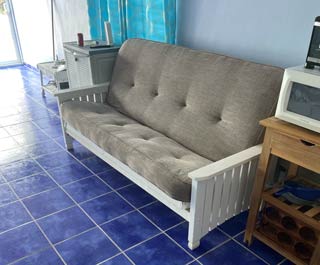 Our most recent updates include a major renovation to enclose our patio allowing for enjoyment of viewing all the marine activity on the Caribbean Sea without having to be annoyed with bug bites or the heat. Brand new bedroom furniture has been purchased with a King orthopedic mattress, side tables, lamps and a dresser. The bathroom upstairs has a water heater and custom cabinets made by a local artisan. There is a digital safe in the closet. Over the upstairs balconey is a custom metal sunshade along with patio lounge furniture. The lower level living space offers a somewhat smaller toilet area and shower and a fully equipped kitchen with refrigerator, microwave, cooktop, coffee maker, blender and toaster oven. The living area has a comfortable fold out futon, a trundle bed, a round table with chairs for breakfast and flat-screen smart tv with connections for Netflix, Youtube, etc. The wifi is fairly fast for connection and download speed.